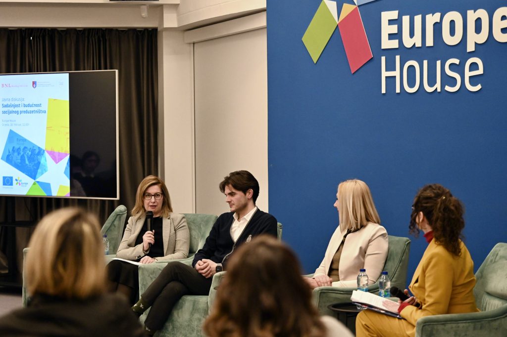 Europe House je organizovao javnu diskusiju „Sadašnjost i budućnost socijalnog poduzetništva“, koja je okupila predstavnike institucija, civilnog društva, poslovnog sektora i mladih kako bi razgovarali o razvoju socijalnog poduzetništva u BiH u kontekstu procesa pristupanja zemlje Evropskoj uniji i korištenja mogućnosti dostupnih kroz Plan rasta Evropske unije za Zapadni Balkan.
